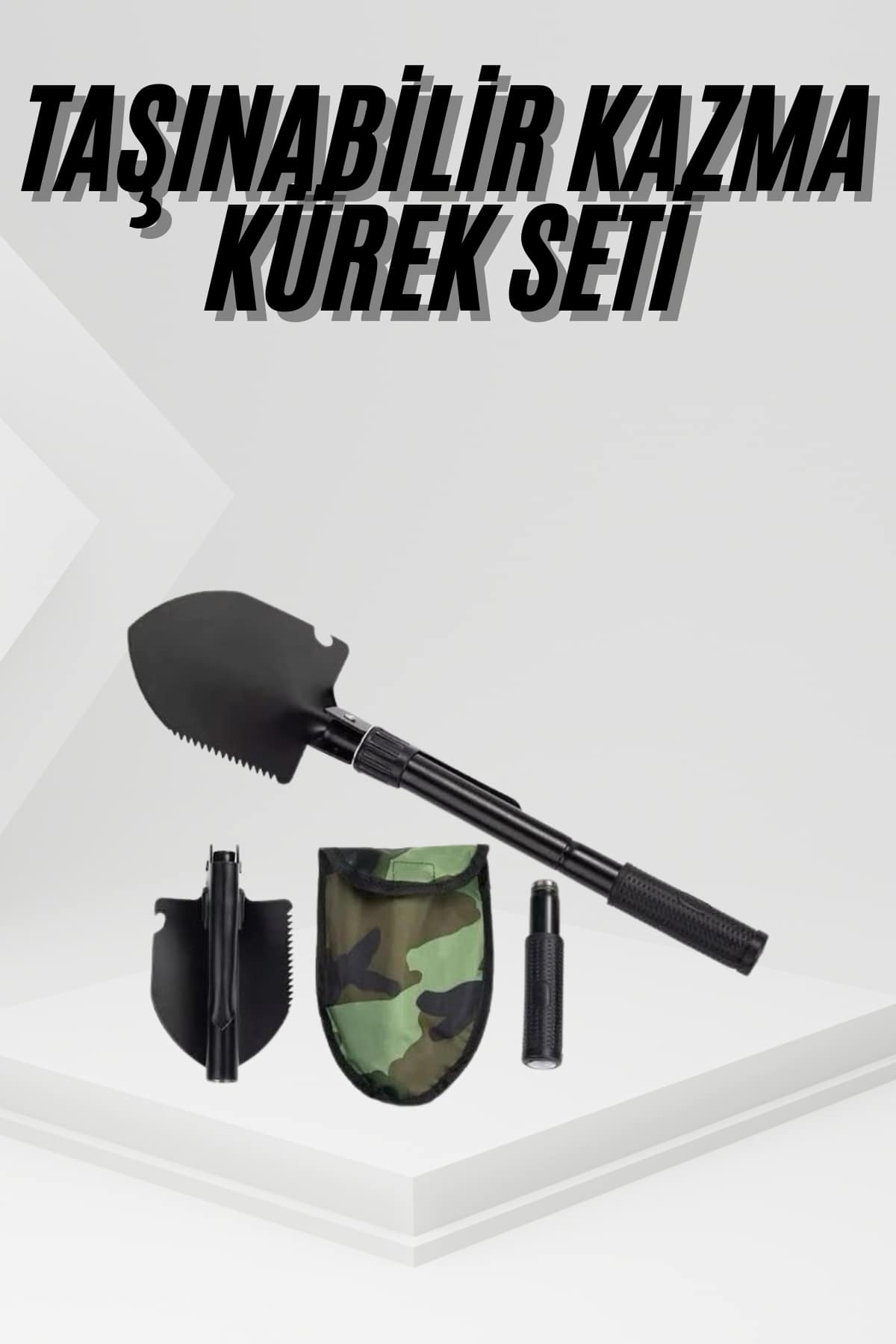 Zorlu doğa koşullarında pratik çözümler sunan portatif çantalı pusulalı katlanabilir kazma kürek seti, kamp, doğa yürüyüşü, dağcılık, askeri görevler ya da acil durumlar için tasarlanmış fonksiyonel bir ekipmandır. Sertleştirilmiş karbon çeliğiyle üretilmiş olan bu sağlam yapı, uzun ömürlü kullanım sunarken; ergonomik, kaymaz kauçuk sapı sayesinde kullanım sırasında ekstra konfor ve güvenlik sağlar.