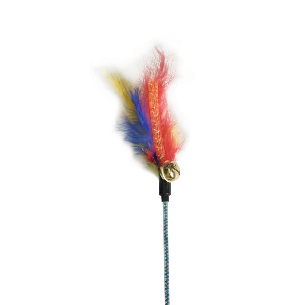 Uç kısmında tüy ve ses çıngırağı bulunmaktadır. Oynarken eğlenmesini de sağlar. Renkli tüyleri kedinizin ilgisini çekmeye yarar.