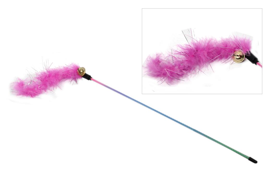 Uç kısmında tüy ve ses çıngırağı bulunmaktadır. Oynarken eğlenmesini de sağlar. Renkli tüyleri kedinizin ilgisini çekmeye yarar.