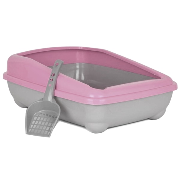- Açık pembe renkte kedi kum kabıdır.