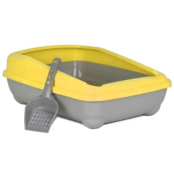 - Sarı renkte kedi kum kabıdır.