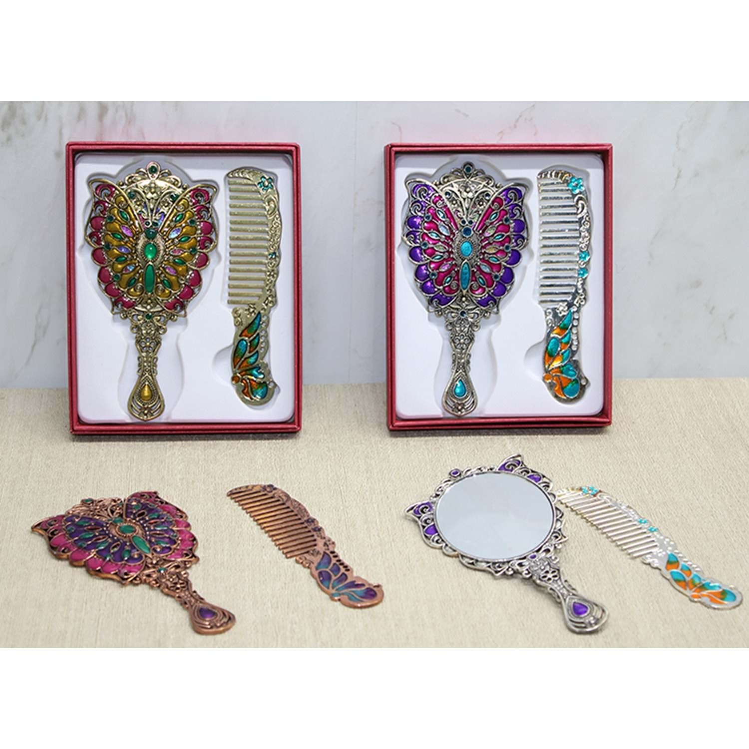 Kelebek Ayna Ve Tarak Seti Küçük Boy