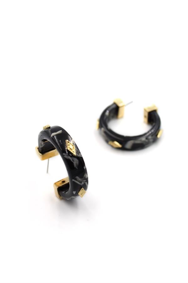 Kemik Halka Küpe - Siyah