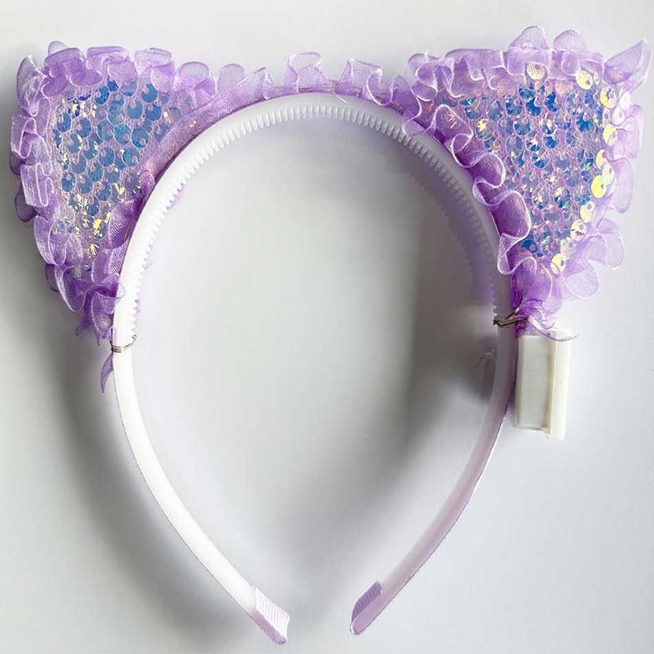 Kenarları Dantelli Mor Pullu Payetli Led Işıklı Kedi Kulak Taç Ile:
