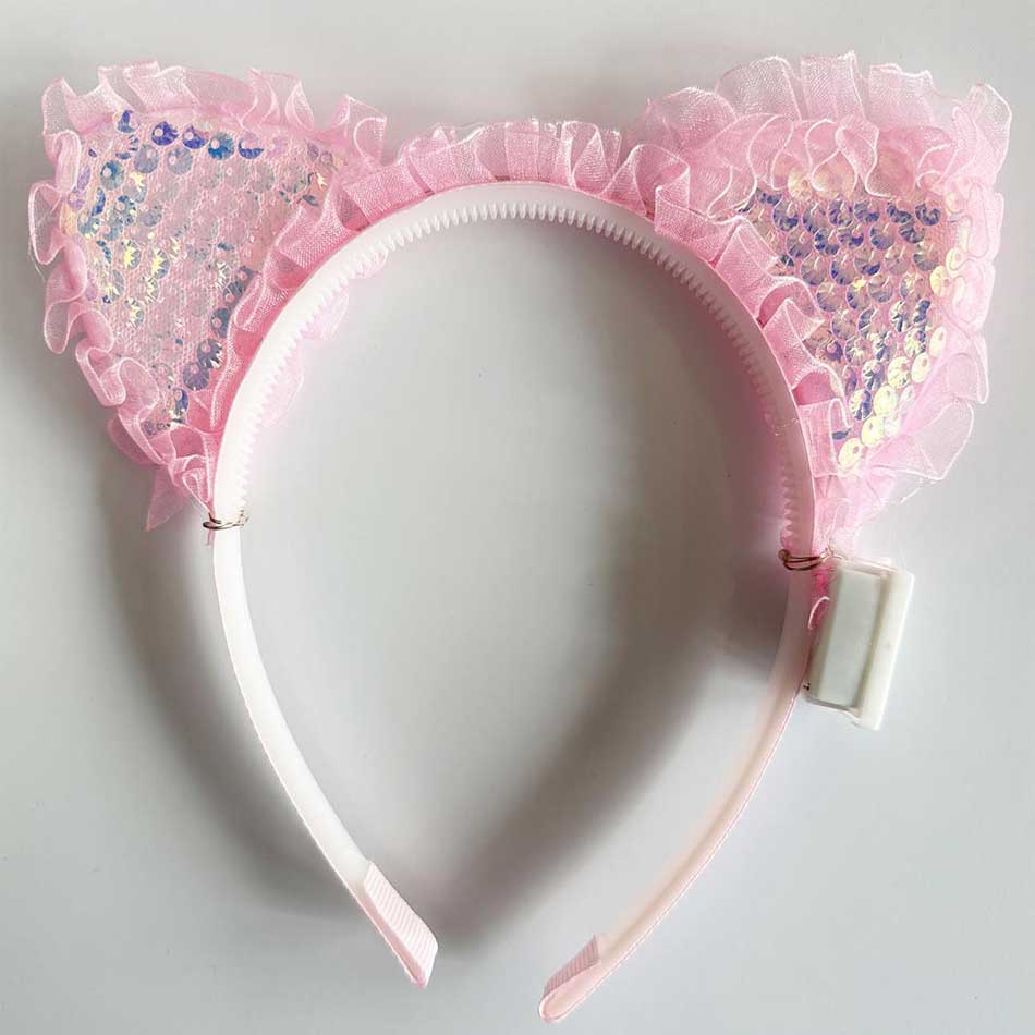 Eğlencenin Ve Şıklığın Bir Araya Geldiği Kenarları Dantelli Pembe Pullu Payetli Led Işıklı Kedi Kulak Taç Ile Partilerin Yıldızı Olun!
