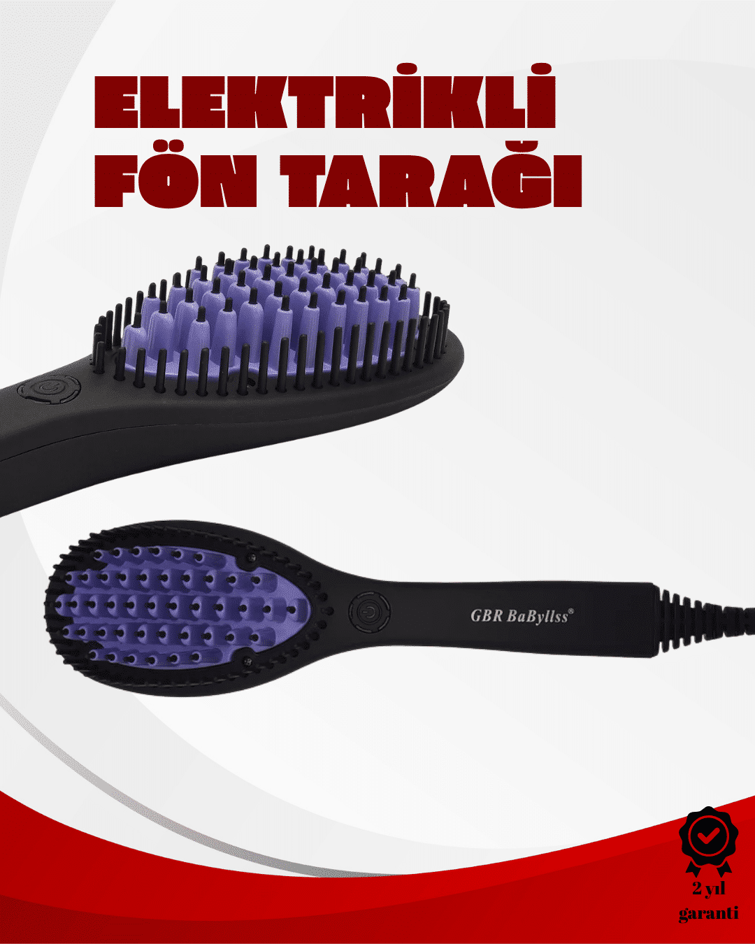 Keramik Isıtıcılı Elektrikli Saç Düzleştirme Fırçası – 360° Kablo