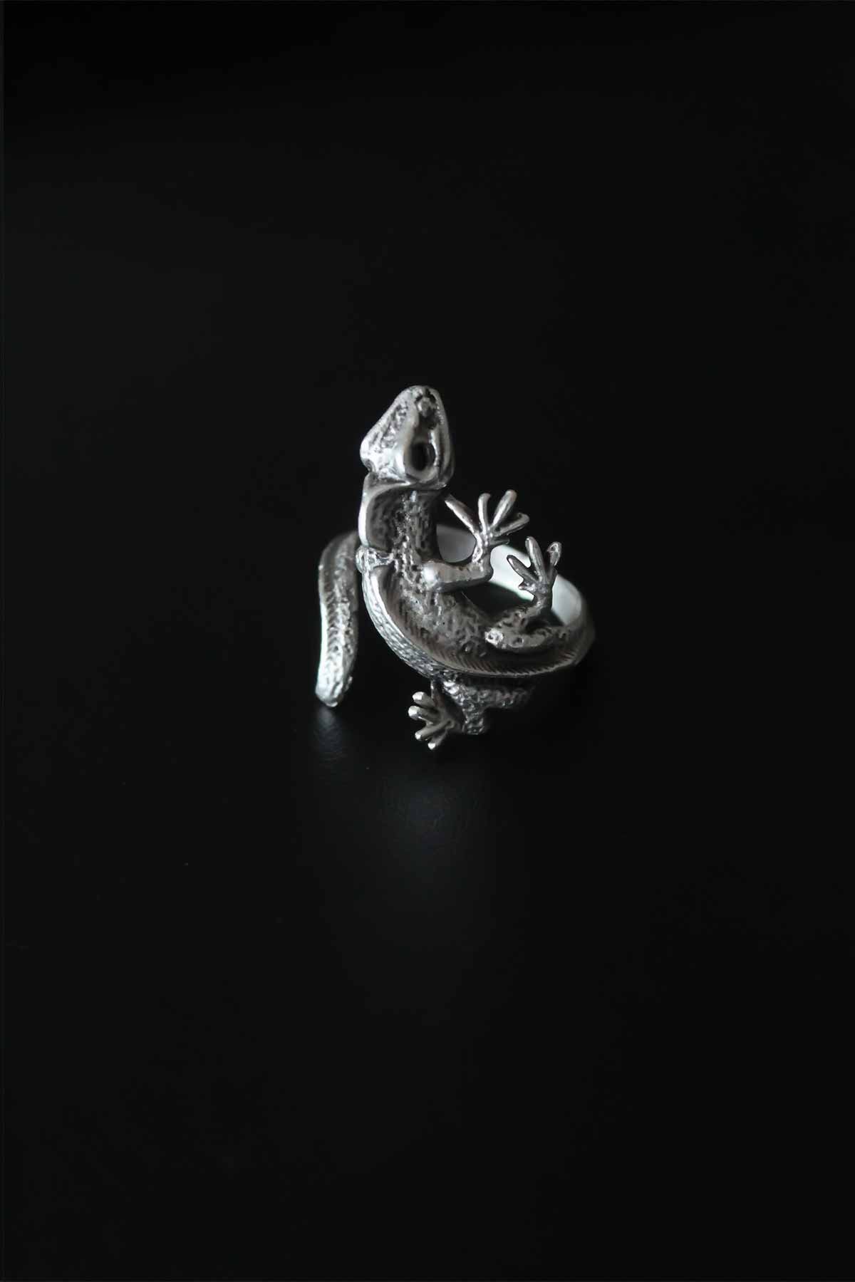 Kertenkele Figür Antik Gümüş Renk Ayarlanabilir Erkek Yüzük - TJ-EY528