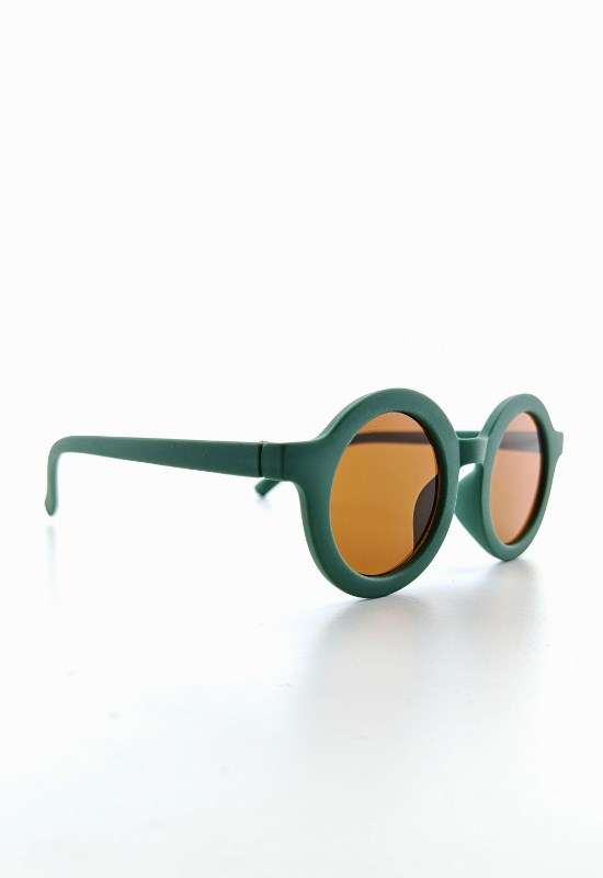 Kids Güneş Gözlüğü Koyu Yeşil Yuvarlak Çerçeve UV 400 Korumalı CE Belgeli Çocuk Güneş Gözlüğü