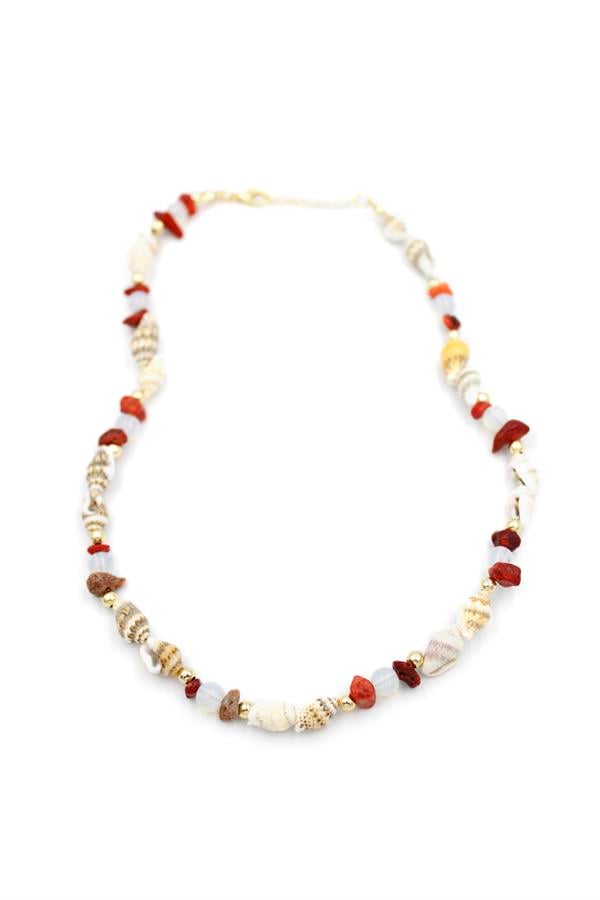 Kırıktaşlı Deniz Kabuğu Kolye - Kırmızı