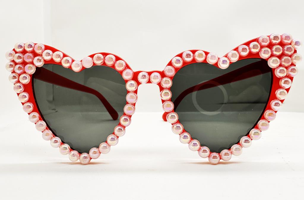 Kırmızı İncili Kalp Gelin Gözlüğü