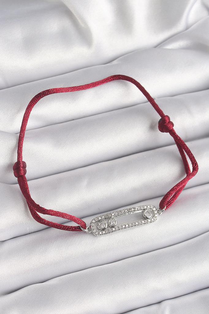 Kırmızı İpli Asansörlü Zirkon Taşlı Gümüş Messika Model Kadın Bileklik - TJ-BB6582