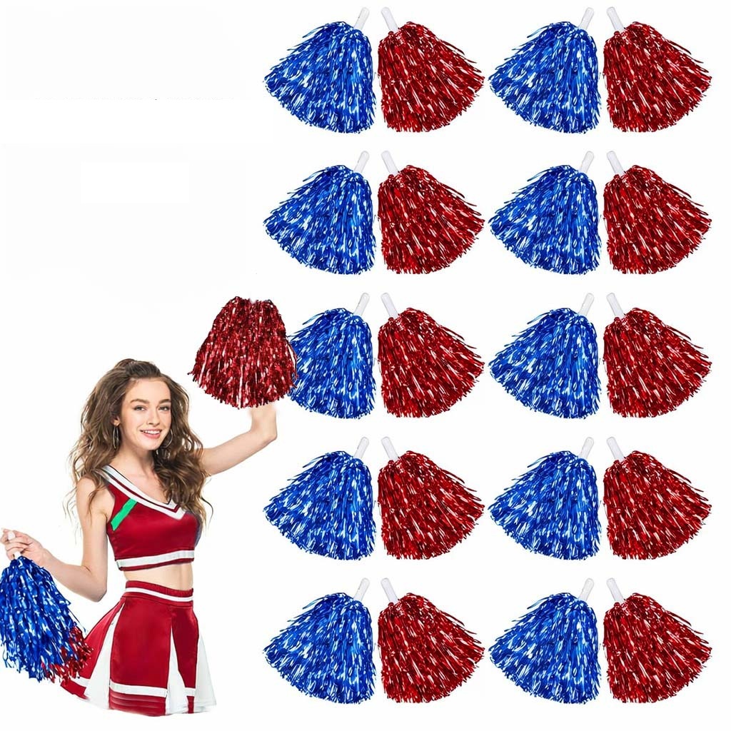 Kırmızı Mavi Metalik Dolgun Gösteri Ponponu 20 Adet (10 Çift)