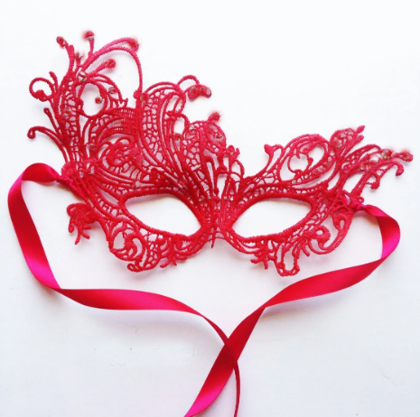 Kırmızı Renk Dantel Örgü İşlemeli Parti Maskesi Model 1