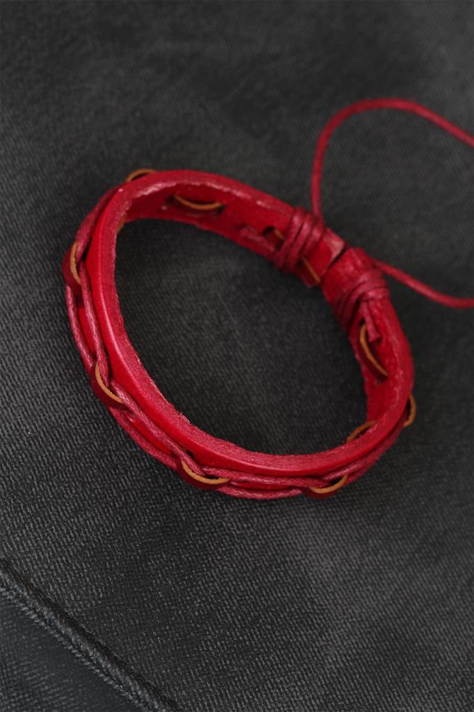 Kırmızı Renk İpli Yeni Sezon Deri Erkek Bileklik - TJ-EB1873