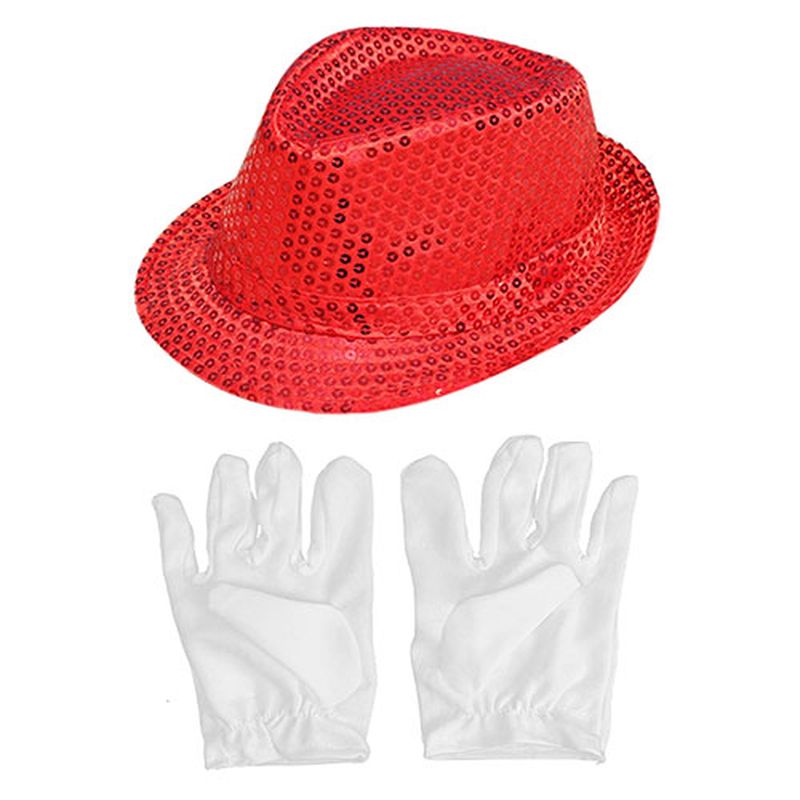 kırmızı Payetli çocuk şapkası Ve Beyaz Renk çocuk Eldveni