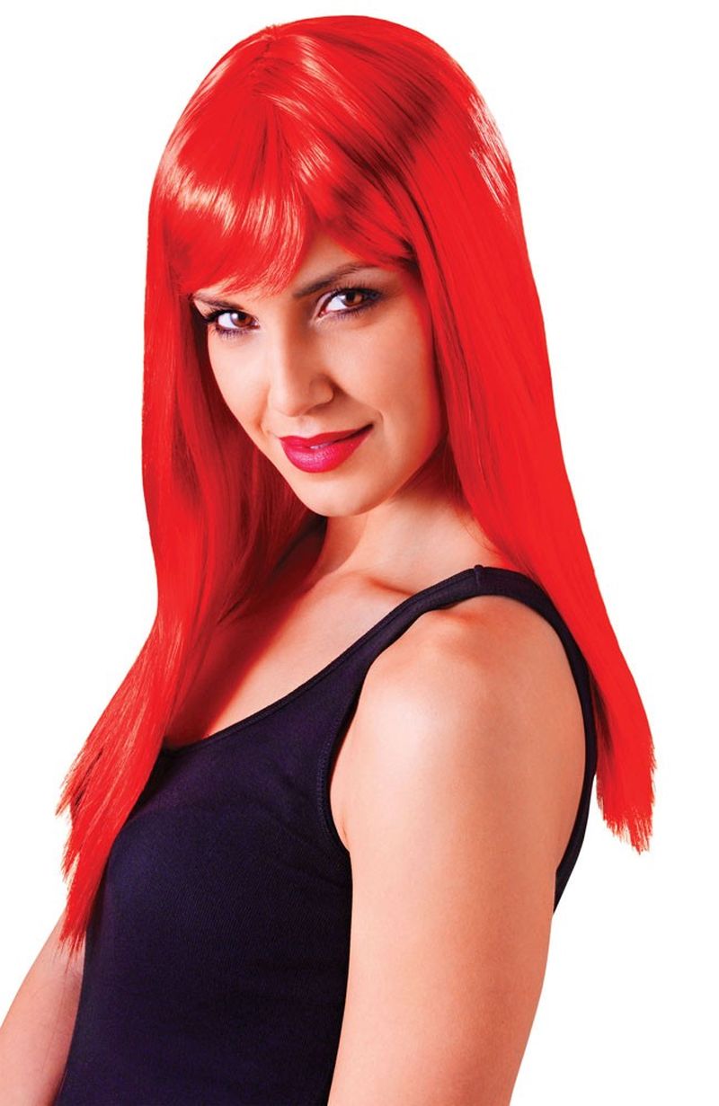 Kırmızı Renk Uzun Düz Parti Peruğu