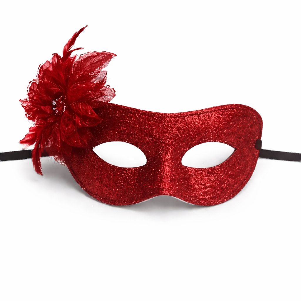KIRMIZI SİMLİ TÜYLÜ BALO MASKESİ