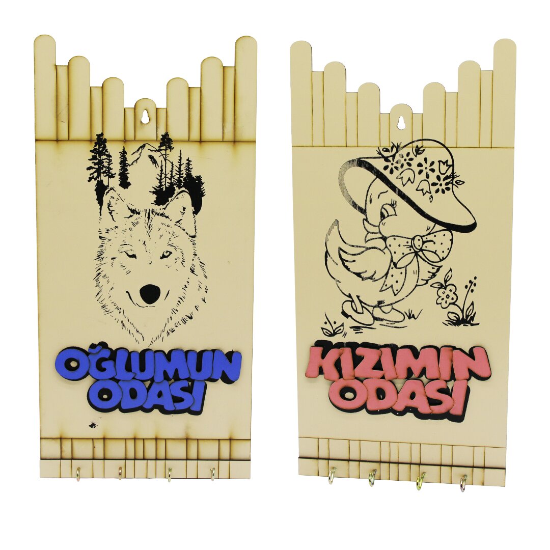KIZ - ERKEK ÇOCUK FİGÜRLÜ (OĞLUMUN-KIZIMIN ODASI YAZILI AHŞAP ANAHTARLIK