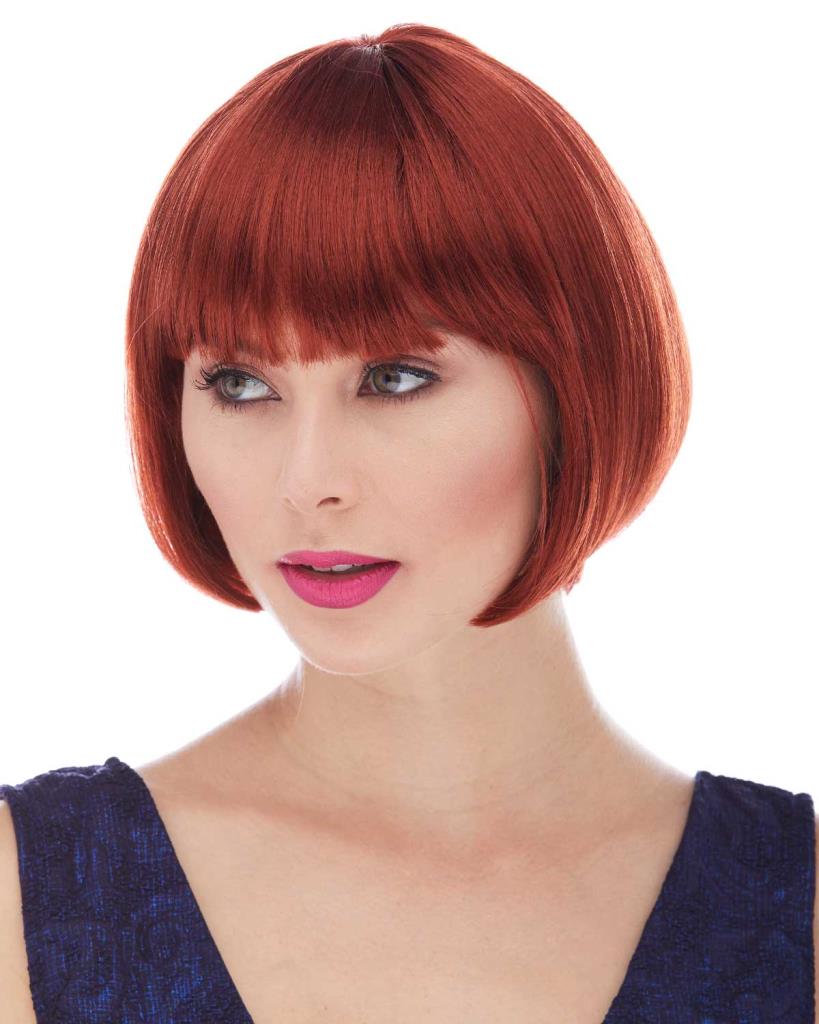 Kızıl Renk Düz Kesim Astarlı Küt Parti Peruğu