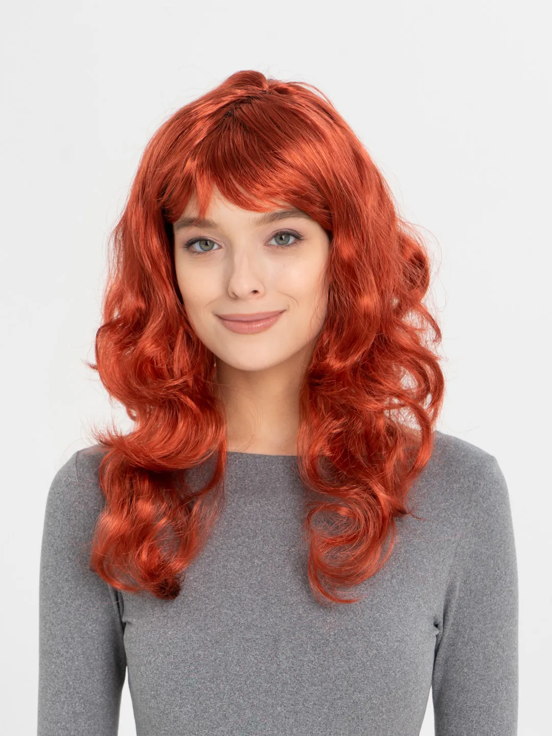 Kızıl Renk Kahküllü Dalgalı Uzun Parti Peruğu