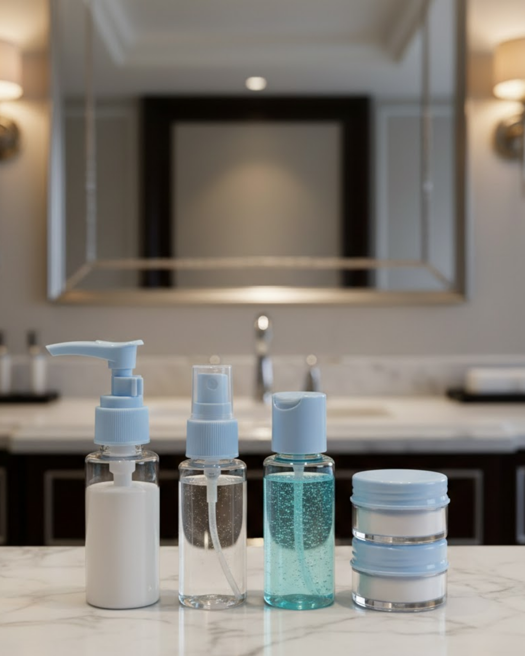 Kompakt 5’li Seyahat Banyo Şişe Takımı Çantalı