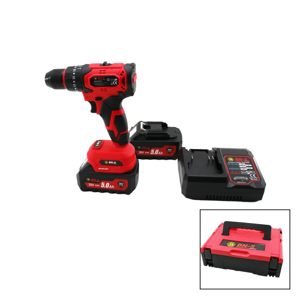 Kömürsüz 36V - Darbeli Kırmızı Şarjlı - Yedek Batarya - 5.0Ah Prof.Matkap Seti Çantalı F-136