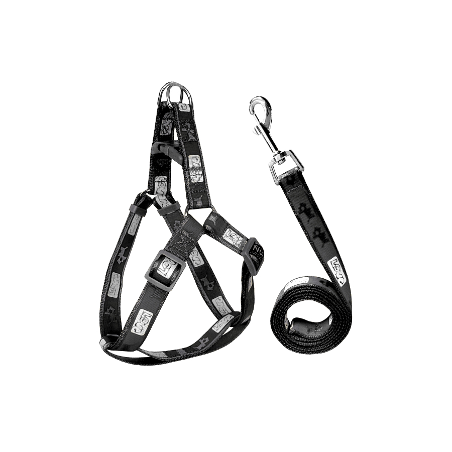 Köpek Göğüs Tasma Seti Köpek Desenli 120 cm-34 cm-47 cm Siyah