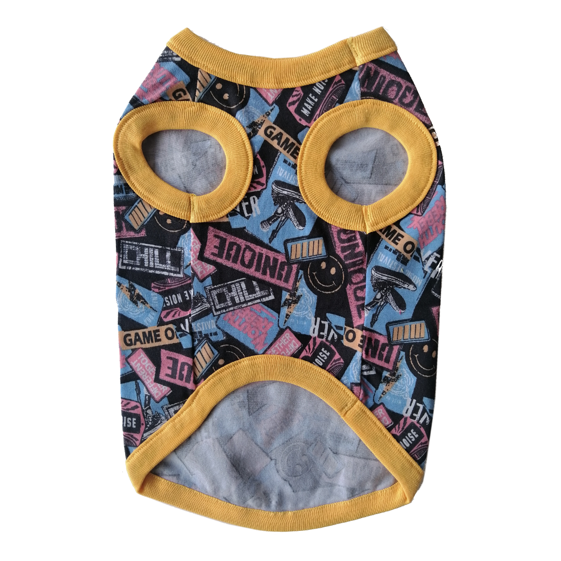Köpek Kıyafeti Desenli Hardal Yakalı Tişört XXL 43 cm