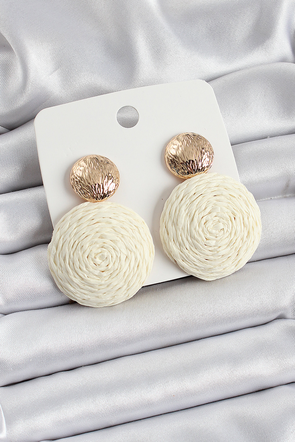 Krem Daire Figürlü Hasır Örgü Model Gold Renk Kadın Küpe - TJ-BKP10725