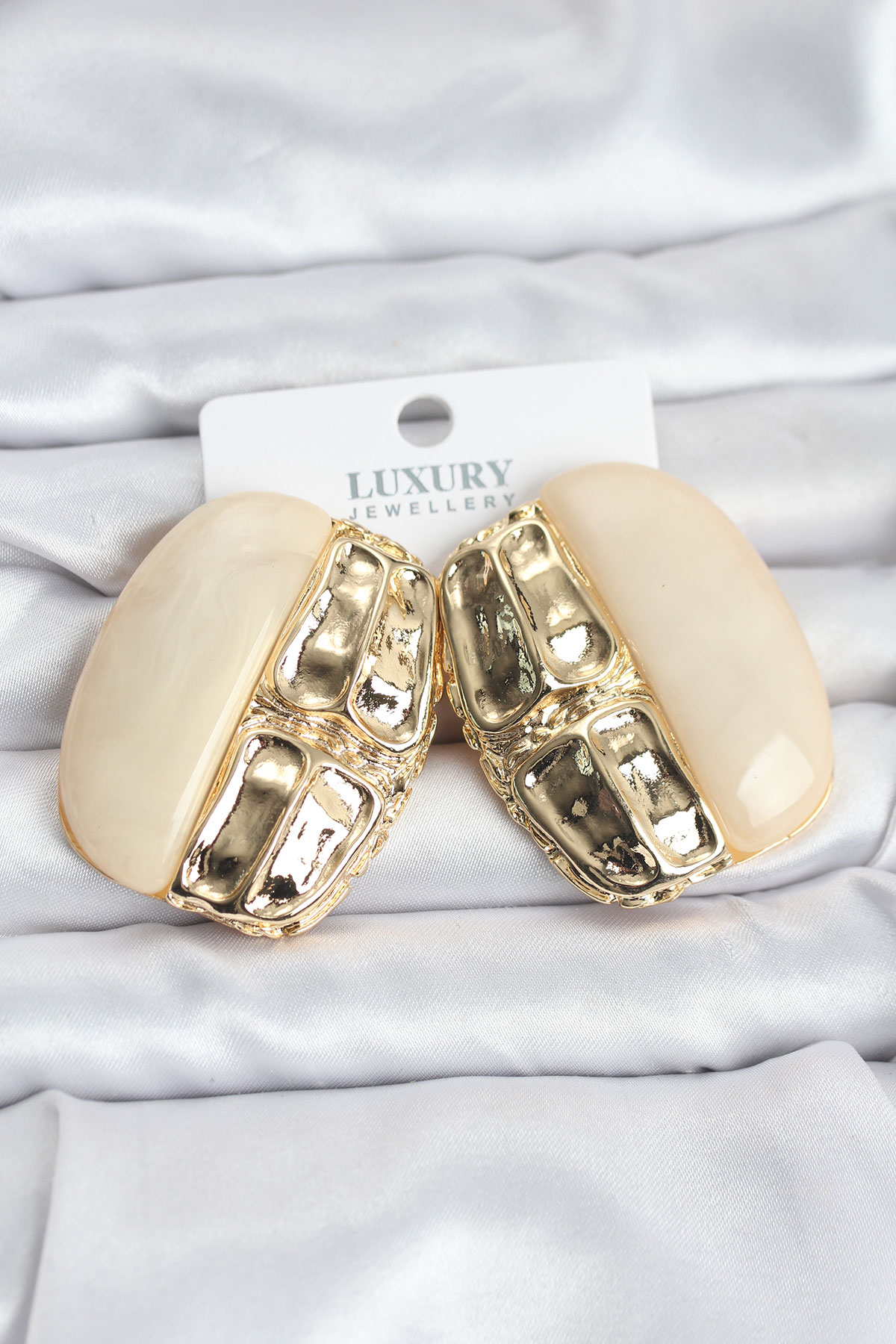 Krem Renk Pirinç Vintage Kadın Küpe - TJ-BKP11499