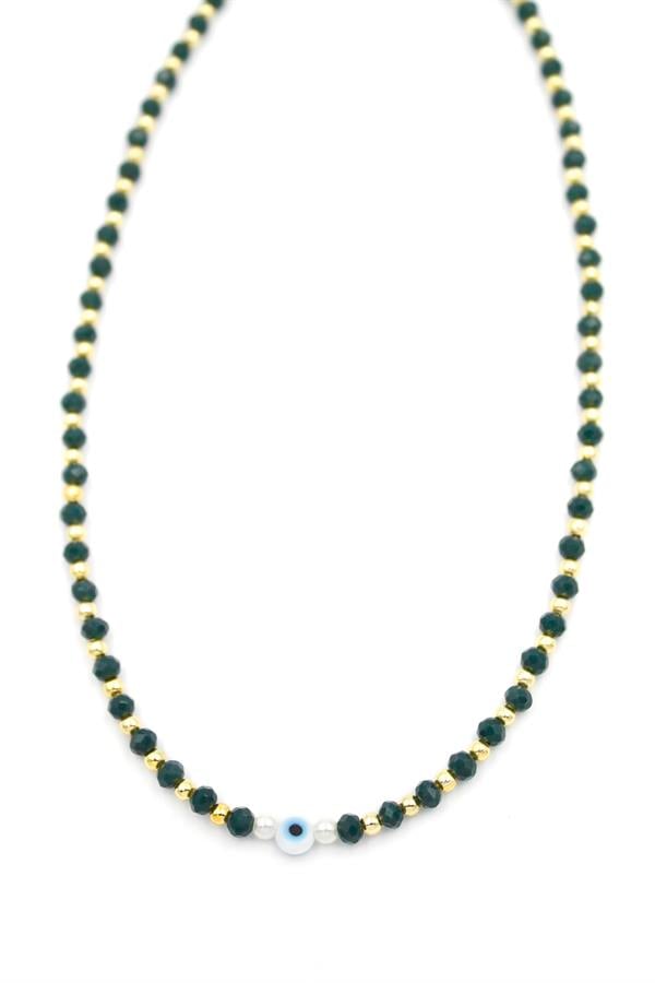 Kristal Boncuklu Kolye - Yeşil