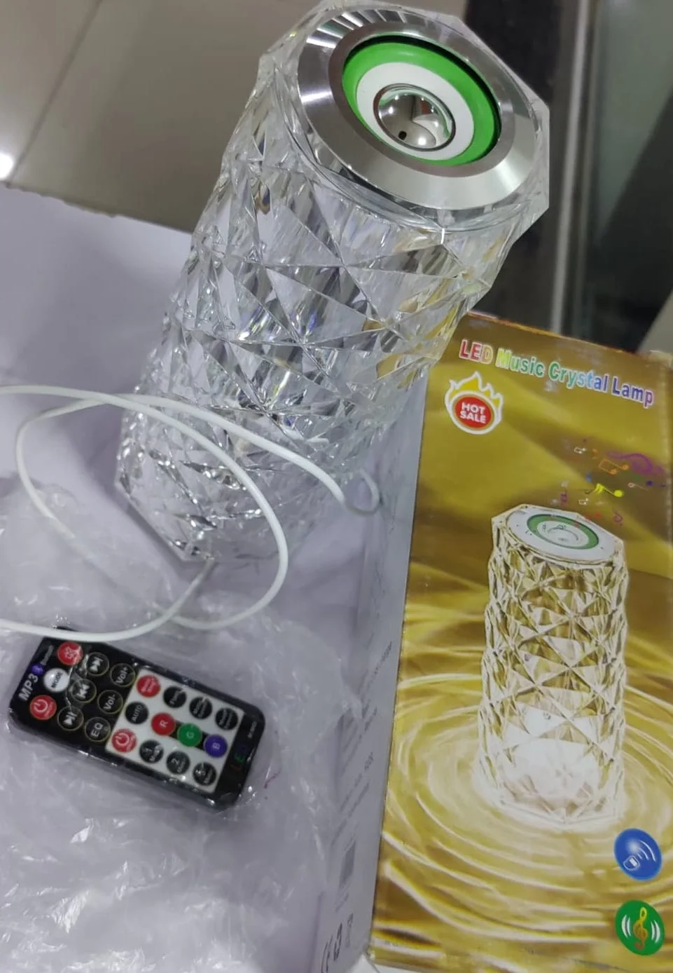 Kristal Masa Lamba Led Bluetooth Hoparlör Uzaktan Kumandalı