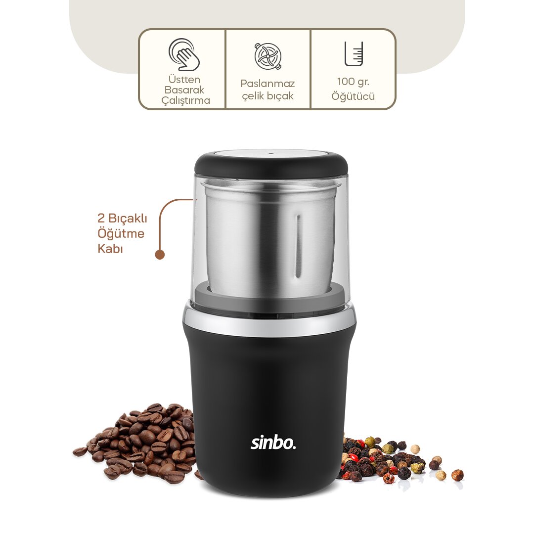 Krom Kenar Kahve Baharat Öğütücü Çeli̇k Bıçak Ö.haznesi̇=100Gr 200W Bas Çalıştır Kapak=Mi̇ka Pls Scm2997