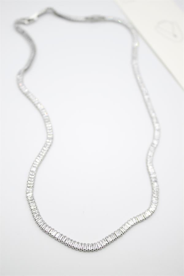 Küçük Baget Taşlı Su Yolu Kolye - Gümüş