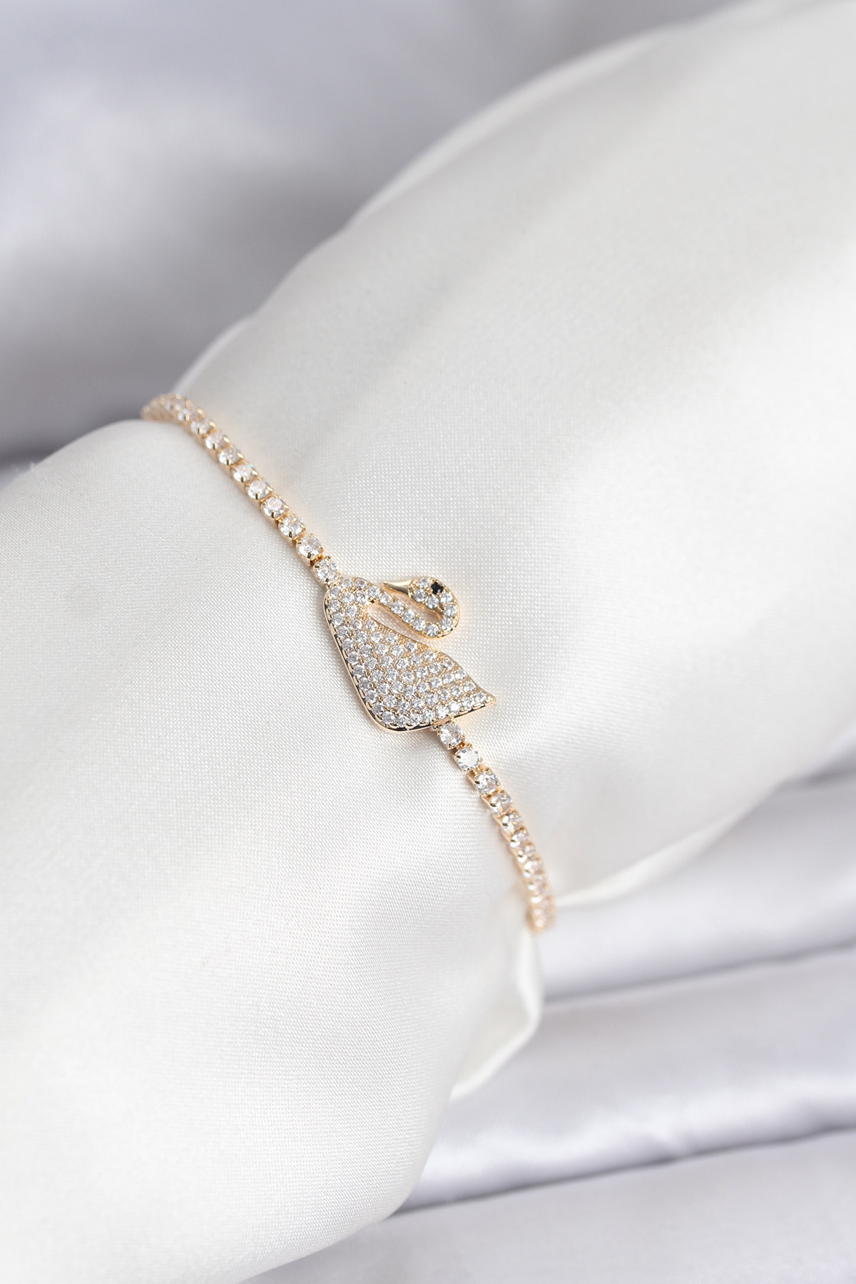 Kuğu Model Zirkon Taşlı Gold Renk Asansörlü Su Yolu Bileklik - TJ-BB8246