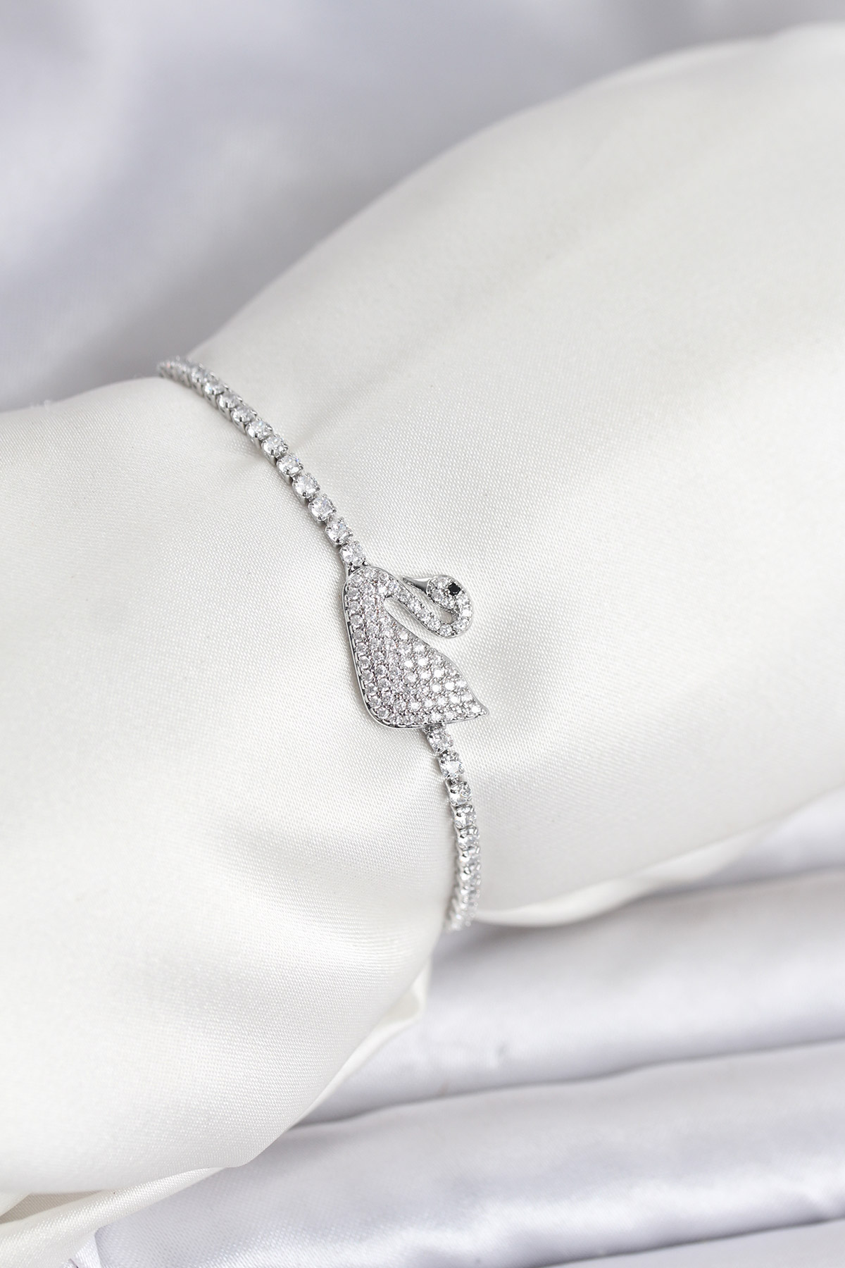 Kuğu Model Zirkon Taşlı Gümüş Renk Asansörlü Su Yolu Bileklik - TJ-BB8245