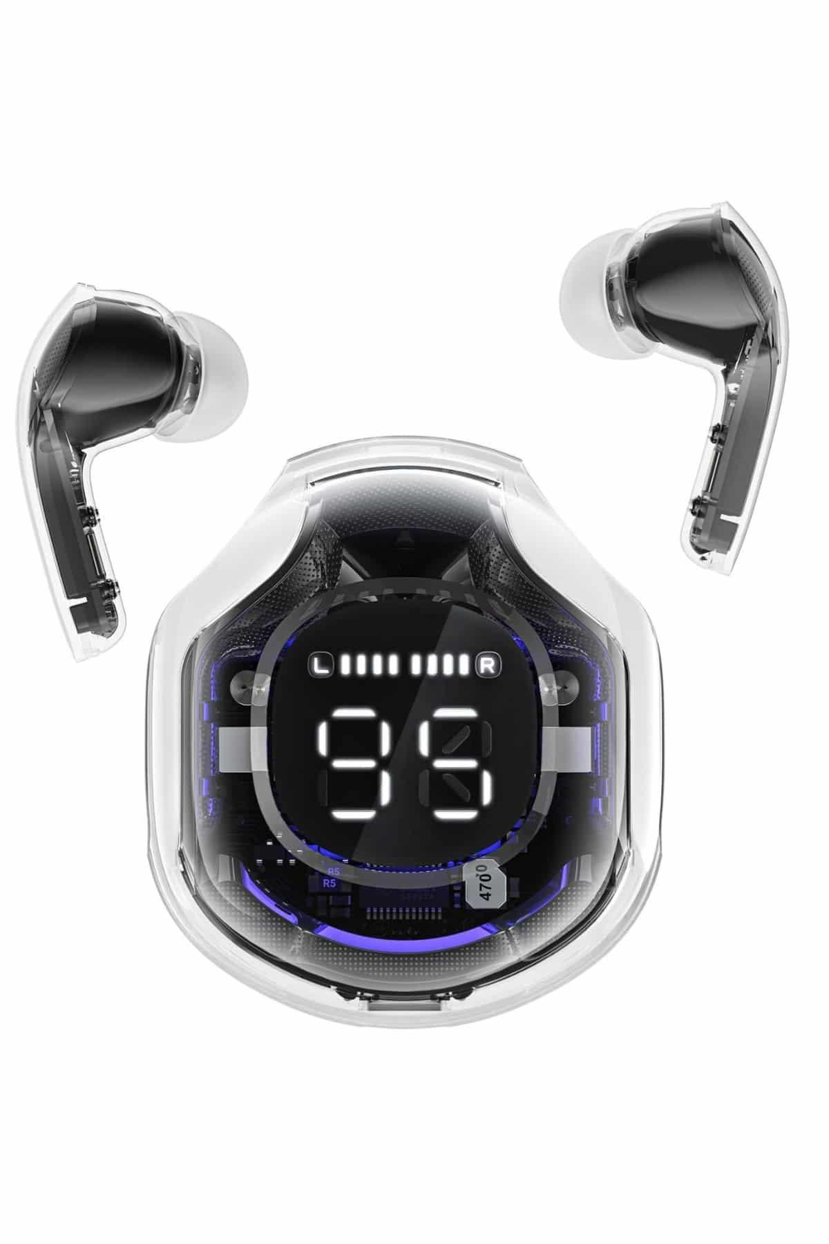 Kulaklığın üzerindeki dokunmatik kontrol paneli, çağrı yanıtlama, ses kontrolü, şarkı değiştirme gibi işlemleri kolayca gerçekleştirmenize olanak tanır. Dijital LED ekranlı şarj kutusu, batarya seviyesini anlık olarak takip etmenizi sağlar. Bu da kulaklıklarınızı her zaman kullanıma hazır halde tutmanızı kolaylaştırır.