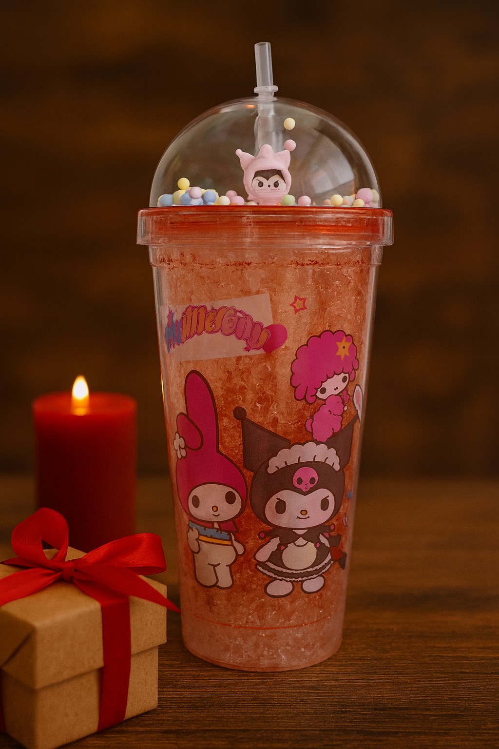 Renkli tasarımı ve ışıltılı detaylarıyla bu kuromi temalı bardak, çocukların ve gençlerin favorisi olacak. Hem eğlenceli hem de pratik yapısıyla içecek saatlerine neşe katıyor.