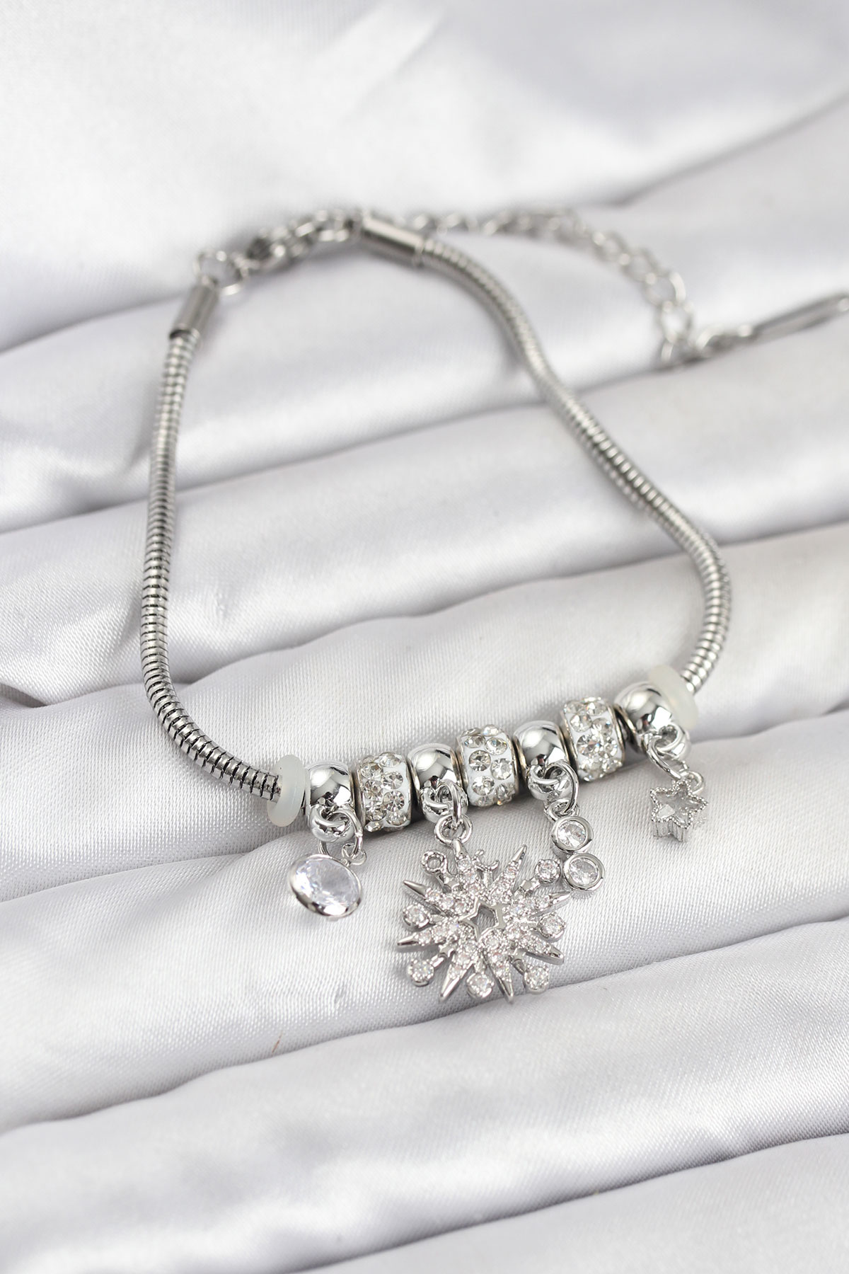 Kutup Yıldızı Model Charmlı Gümüş Renk Kadın Bileklik - TJ-BB8214
