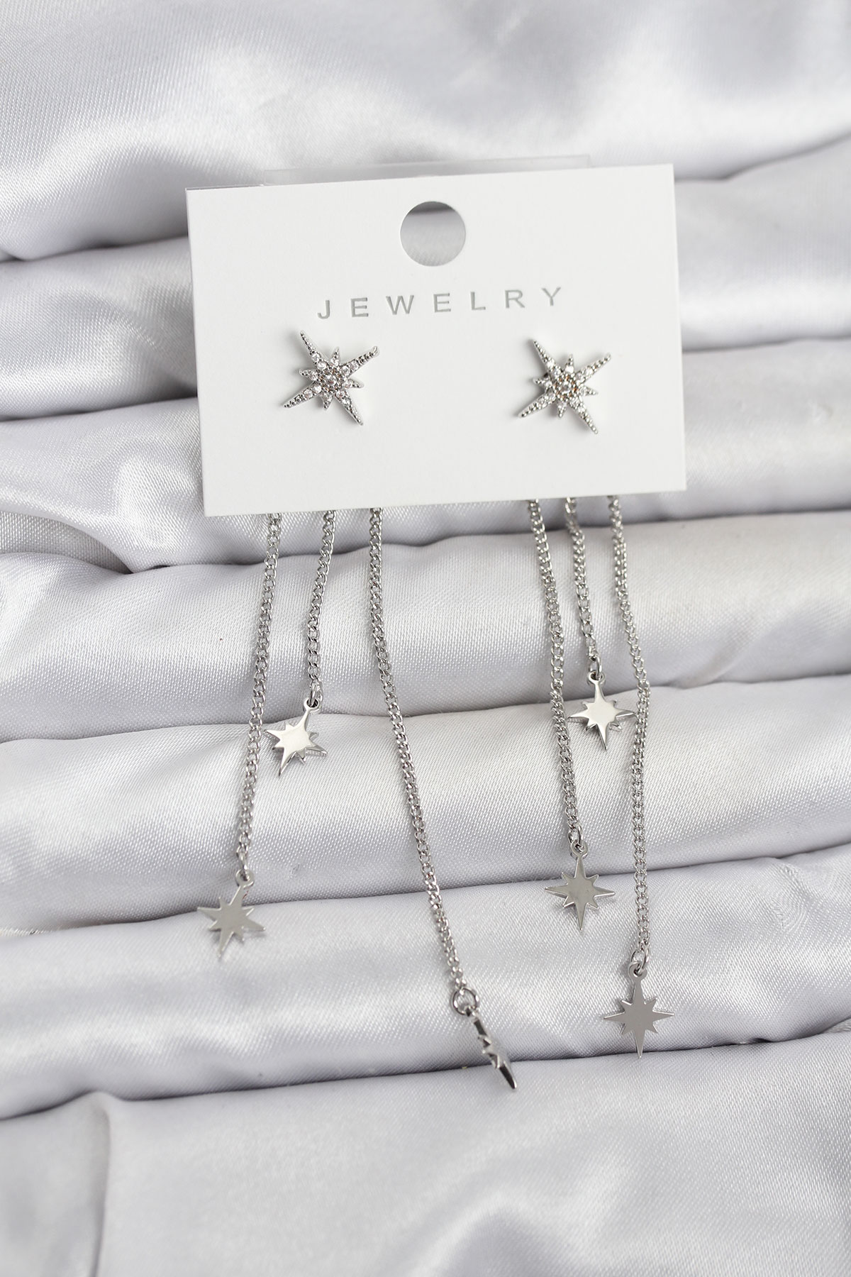 Kutup Yıldızı Model Gümüş Renk Pirinç Sallantılı Kadın Küpe - TJ-BKP11458