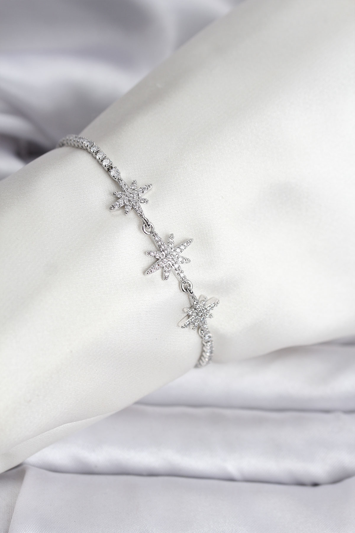 Kutup Yıldızı Model Zirkon Taşlı Gümüş Renk Su Yolu Kadın Bileklik - TJ-BB8107