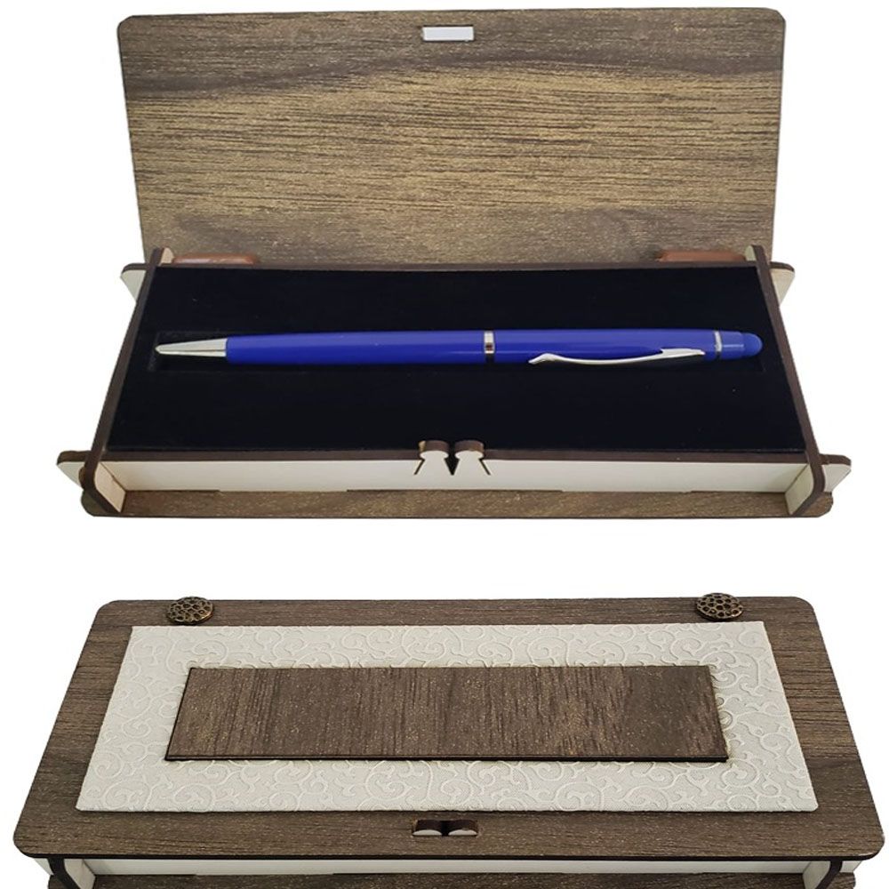 Lacivert Metal Kalem Ahşap Deri Kutulu