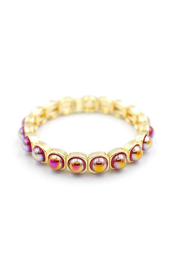 Lastikli Taşlı Bileklik - Fuşya
