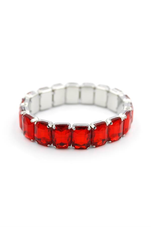 Lastikli Taşlı Bilezik - Kırmızı