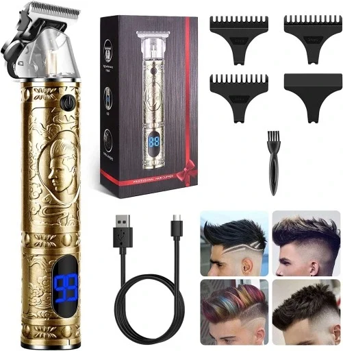 LCD Dijital Ekran T9 Tüm Metal Tıraş Makinesi Seyahat Taşınabilir Elektrikli Berber Elektrikli İtici Saç Kesme Makinesi