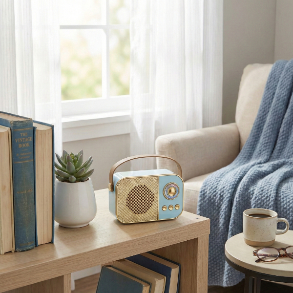 LED Aydınlatmalı Hoparlör Mavi, retro tasarımı modern ses teknolojisi ile buluşturan özel bir hoparlördür. Pastel mavi rengi ve altın detaylı şık gövde yapısı ile hem dekoratif bir obje hem de günlük kullanımda güçlü bir ses kaynağı olarak öne çıkar. Bluetooth 5.2 teknolojisi sayesinde hızlı ve stabil bağlantı sunarak tüm cihazlarla sorunsuz bir şekilde eşleşir. USB ve TF kart girişleriyle kablosuz bağlantıya ihtiyaç duymadan da müzik çalma imkânı tanır ve kullanıcıya yüksek seviyede özgürlük sağlar.