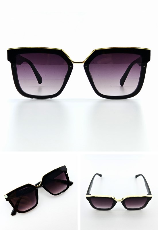 Lena Kadın Güneş Gözlüğü Gold Üst - Siyah Çerçeve Orta Boy UV 400 Korumalı CE Sertifikalı Güneş