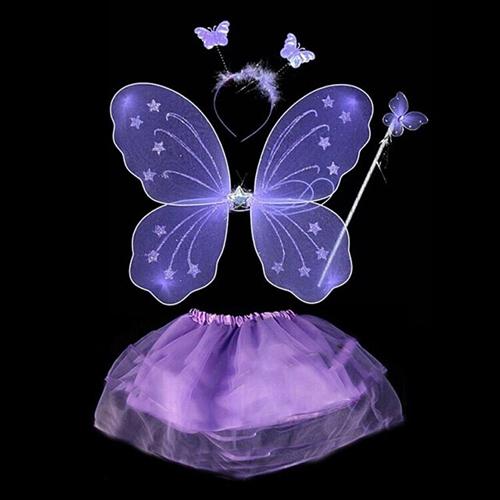 Lila Mor Kelebek Kostümü - Lila Mor Kelebek Kostüm Aksesuar Seti 4 Parça
