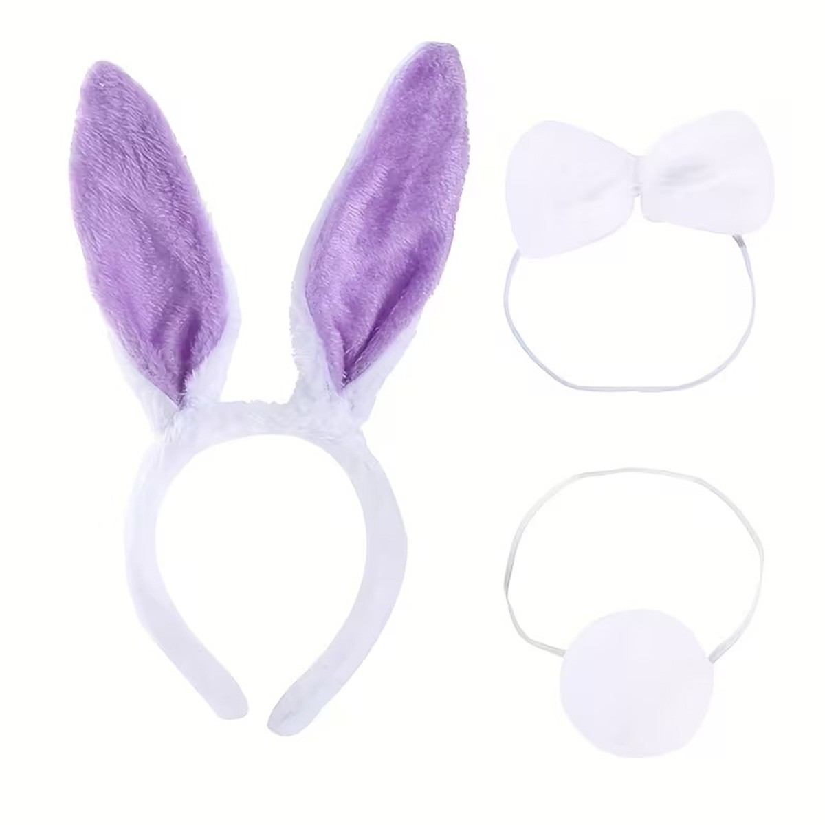 Lila Mor Tavşan Kulak Papyon Kuyruk 3'lü Parti Seti