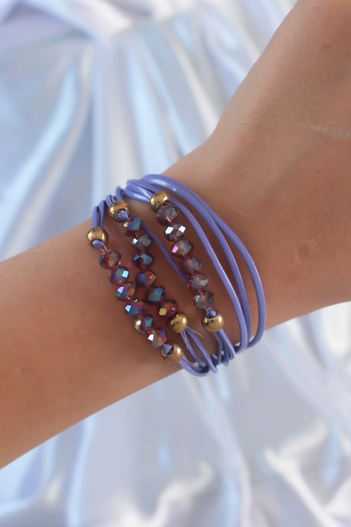Lila Renk Zirkon Taşlı İpli Çoklu Bileklik - TJ-BB6356